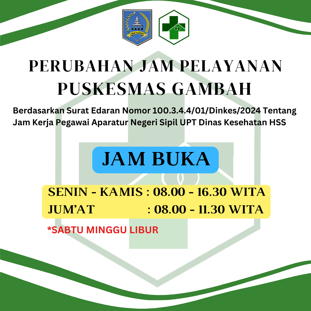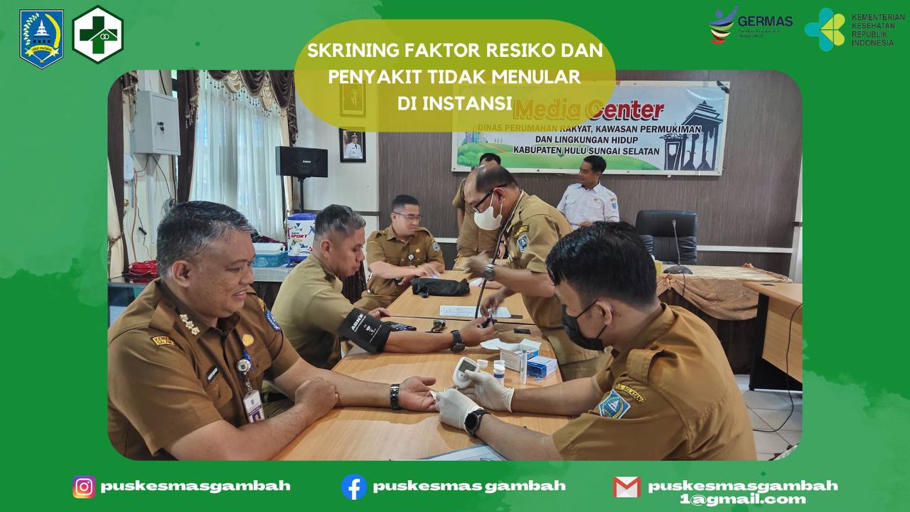 (05/2024) Puskemas Gambah melakukan skrining faktor resiko dan penyakit tidak menular di Instansi wilayah kerja Puskesmas Gambah yaitu Dinas DUKCATPIL Kab HSS, Dinas Perumahan Rakyat KPLH Kab. HSS, dan Instalasi Farmasi Kab. HSS.